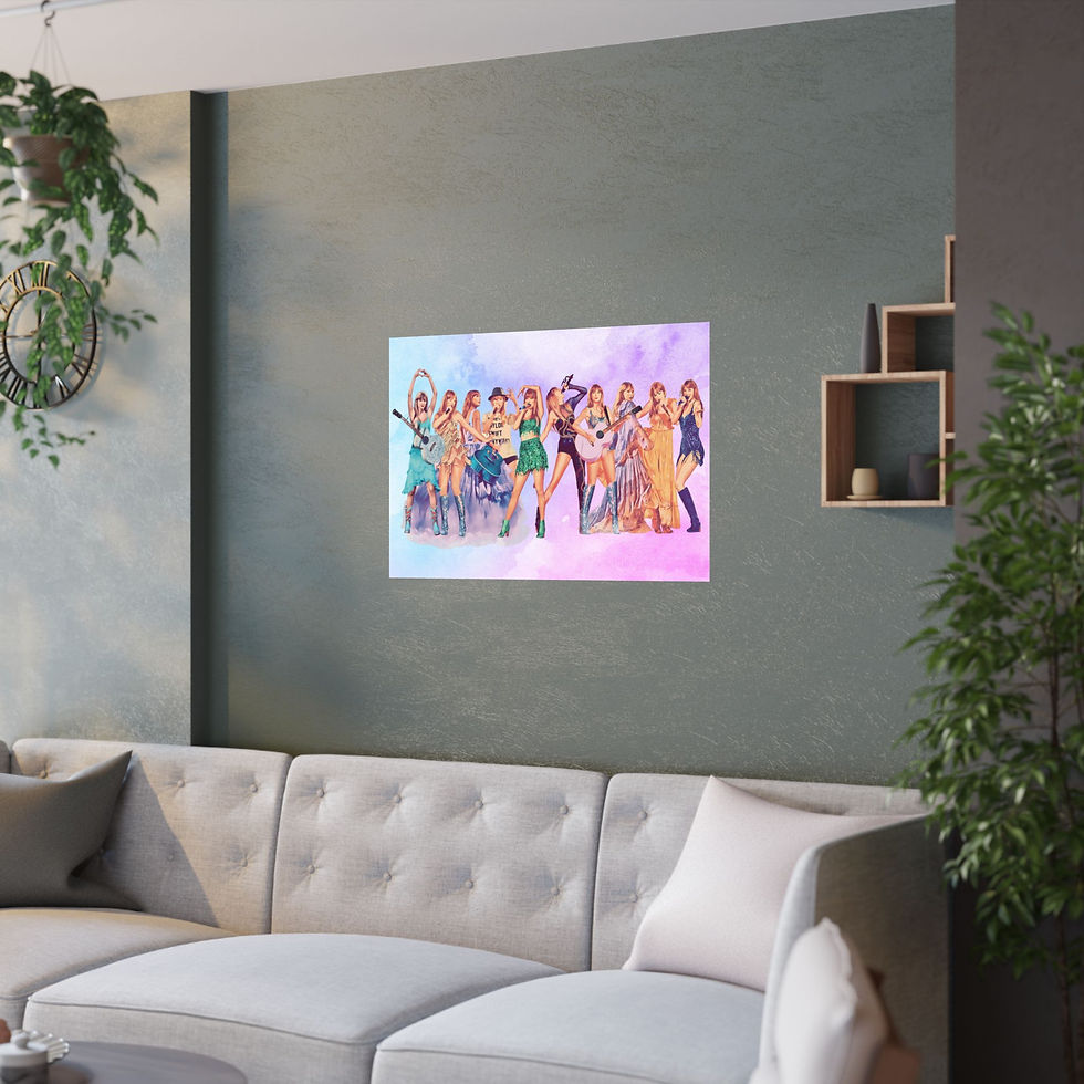 Eras Tour Watercolor Fashion Outfit 36x24 Satin Poster Home Decor Wall Art Gift